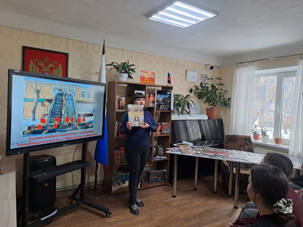 12 февраля в библиотеке филиале №1 прошёл урок мужества «Афганистан: горячие секунды жизни» для учащихся ГБОУ ССШ № 9 им. А. Стаханова.