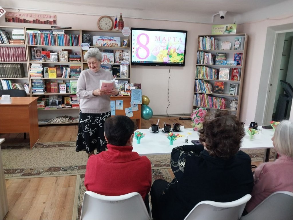 На мероприятии прозвучали тёплые, искренние, нежные слова поздравления и признательности в адрес наших читательниц, представительниц прекрасной половины человечества. Библиотекарь подготовила праздничную слайд-презентацию с поздравлениями и теплыми пожеланиями. Участники увлечённо отвечали на вопросы викторины, участвовали в конкурсах.