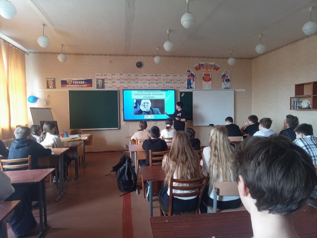 27 марта библиотека-филиал № 3 провела информационную беседу «Вертикаль в кино и в жизни» об известном советском и российском кинорежиссере, актере и общественном деятеле Станиславе Сергеевиче Говорухине для учащихся 6, 10 и 11 классов Стахановской специализированной школы № 10.