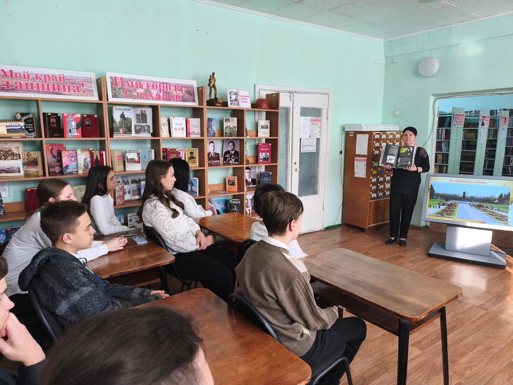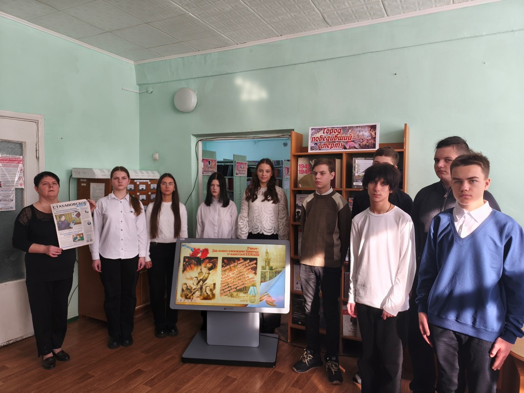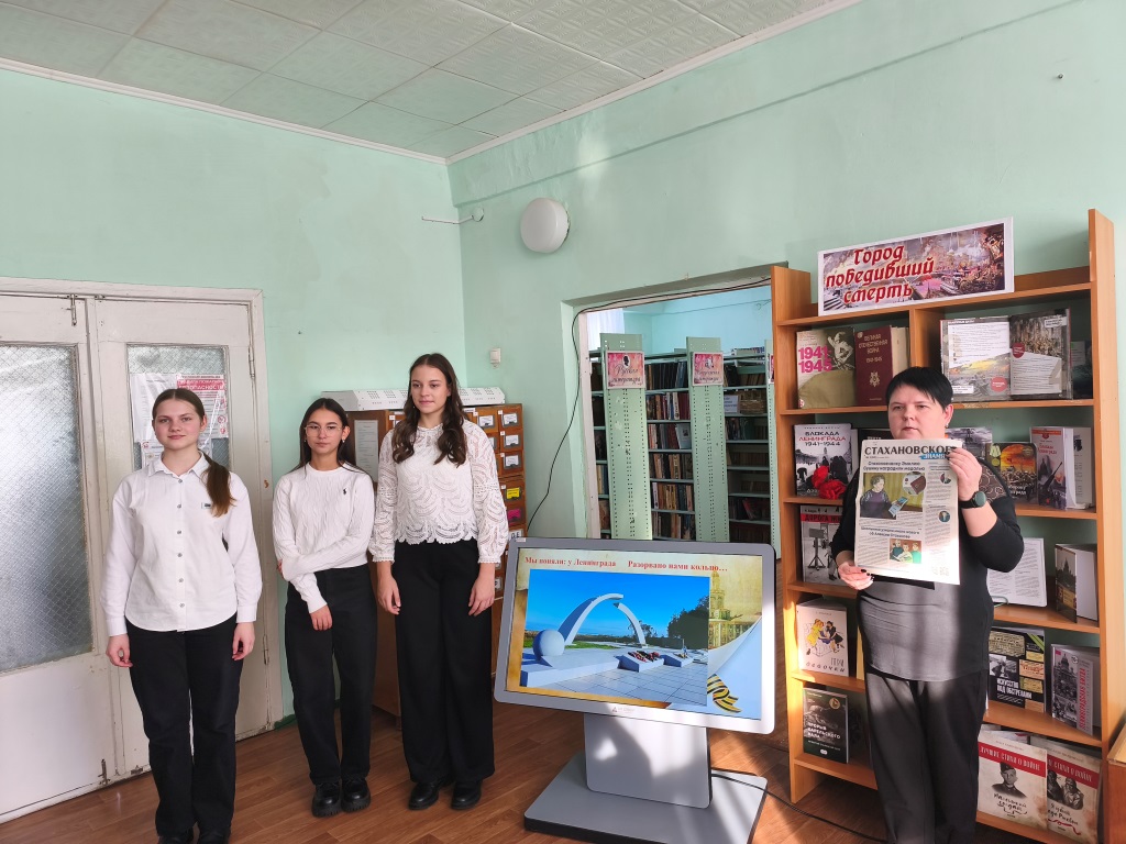 26 января в библиотеке-филиале №3 для учащихся 9-а класса Стахановской гимназии им. Кирилла и Мефодия прошла беседа-память «Навеки подвиг ленинградцев помним, чтим и почитаем», которая была приурочена памяти блокадницы, Эмиилии Сушиной. Библиотекарь напомнила ребятам о страшных днях, которые во время Великой Отечественной войны пришлось пережить жителям Ленинграда. Рассказала, что день 27 января является Днем освобождения Ленинграда от фашистской Блокады и о том, что это одна из ключевых памятных дат в истории Великой Отечественной войны. Сегодня учащиеся собрались в библиотеке, чтобы еще раз вспомнить блокадницу тех страшных событий – Эмилию Сушину, являвшейся почетным гражданином города, ветераном Великой Отечественной войны. Это был светлый и добрый человек. В 91 год она оставалась женщиной с безупречной прической, красивым маникюром, светлой улыбкой и всегда в туфельках на каблучках. Каждый год ребята навещали ее, поздравляли с праздниками, дарили подарки, сделанные своими руками. С огромной любовью они вспоминали о том, что она всегда ждала их, готовилась к их встрече, угощала чаем с блинчиками, приготовленными ею, даже не смотря на ее преклонный возраст. С большой благодарностью и теплотой ребята говорили о том, что Эмилия Петровна была человеком удивительной судьбы и невероятной силы духа. Обращая внимание присутствующих на книжную выставку «Город победивший смерть» и знакомя с книгами, представленными на ней, библиотекарь говорила: «Что с каждым годом, с каждым днём события тех дней всё дальше уходят в историю, но память о погибших и раненых, замученных и обездоленных во времена ВОВ, обязательно должна жить. И мы, поколение наших дедов и прадедов, просто обязаны знать историю своих предков, которые подарили нам спокойную и счастливую жизнь». В течение дня подросткам, посетившим библиотеку, напоминали о тех страшных днях Блокады и знакомили с книгами на выставке. | |