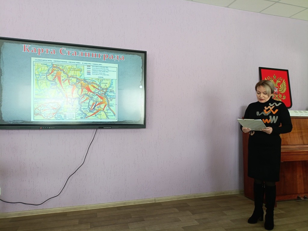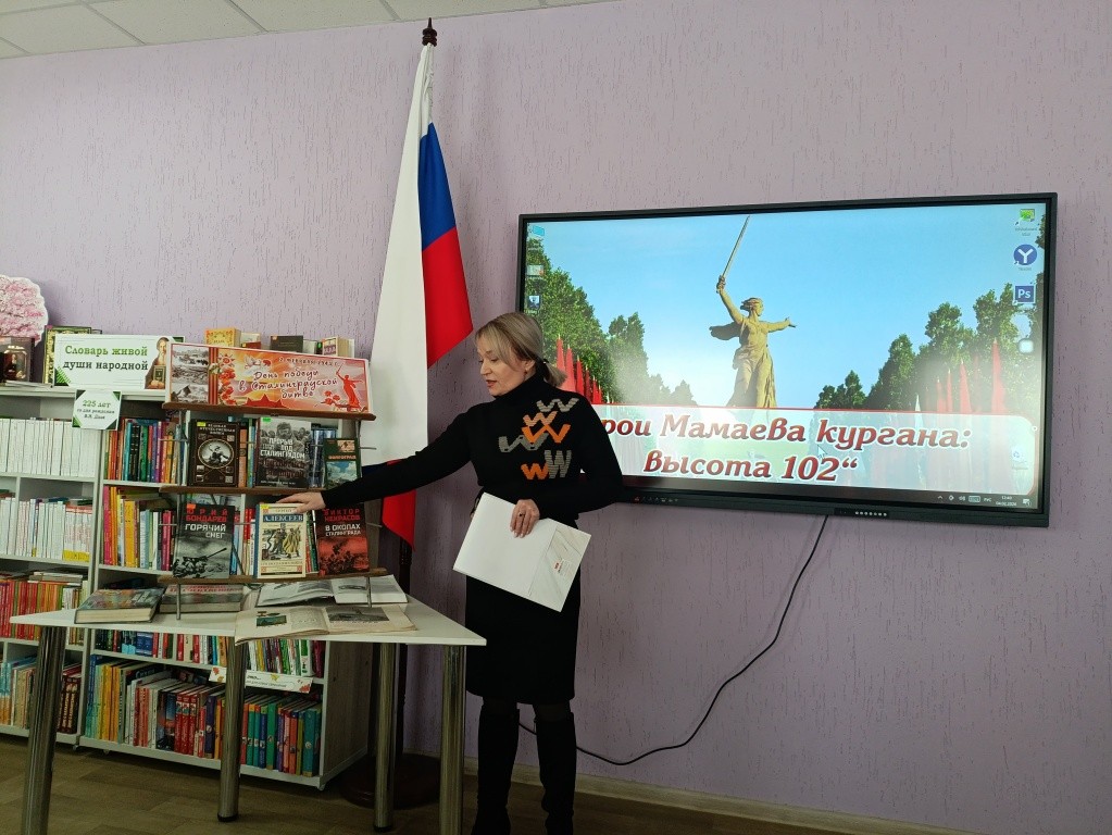 Высота 102… Это не просто цифры на карте. Это – Мамаев курган. Сердце Сталинграда. Место, где решалась судьба не только города, но и всей Европы. Здесь каждый метр земли был полит кровью. Здесь сражались до последнего вздоха. 4 февраля в модельной библиотеке «Триумф» прошёл час мужества «Герои Мамаева кургана: высота 102». Для старшеклассников ССШ №3 мы подготовили не просто исторический рассказ – а диалог с подвигом. На фоне архивных кадров презентации и тихого звучания «Журавлей» ребята узнали историю Мамаева кургана – не как абстрактную «высоту 102», а как землю, где 135 дней решалась судьба мира. Где снег таял от огня артиллерии, а весной на каждый квадратный метр приходилось до 1250 осколков. Где обычные люди – солдаты, связисты, снайперы – становились героями, не думая о славе. Говорили о тех, чьи имена должны знать все: Василий Зайцев, Яков Павлов, Матвей Путилов, Людмила Павличенко, Николай Фильченков… Уникальное путешествие – виртуальная экскурсия по мемориальному комплексу «Героям Сталинградской битвы» на Мамаевом кургане дала возможность ребятам почтить память героев и увидеть один из важнейших символов Великой Победы не выходя из стен библиотеки. В заключение часа мужества библиотекарь обратила внимание детей на книжную выставку литературы «День победы в Сталинградской битве», на которой были представлены книги документального, публицистического и художественного содержания по сталинградской тематике. После мероприятия активисты не разошлись – остались у выставки книг делились впечатлениями и фотографировались. Спасибо каждому, кто сегодня прикоснулся к истории! Герои Мамаева кургана не просят славы. Они просят одного – помнить. | |