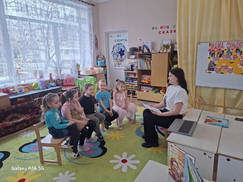 6 марта, накануне самого нежного праздника весны — Международного женского дня 8 Марта, на базе ГБДОУ ЛНР ЯСКВ «Солнышко» для воспитанников старшей группы сотрудники библиотеки-филиала № 2 провели литературно-игровое путешествие «Книжный март для мамочки». В начале путешествия библиотекари рассказали детям трогательную историю возникновения этого весеннего праздника. А затем началось самое интересное: ребята отгадывали загадки о весне и называли весенние месяцы, играли в дружную игру «Ма-моч-ка», вспоминали ласковые слова для мам, бабушек и сестрёнок, сравнивали маму с солнышком — ведь они тоже дарят тепло и ласку и узнали, как слово «мама» звучит на разных языках мира. Особое внимание дети уделили книжной выкладке: «Мартовские книжки», где были представлены произведения о самых дорогих людях — мамах, бабушках и сёстрах. Важный урок: ребята учились говорить «спасибо» самым близким за заботу, мудрость и уют. Пусть мамины глаза светятся от радости, а в семье растёт внимательный и добрый человек! В завершение библиотекари пожелали юным девочкам и воспитателям здоровья, любви и весеннего настроения. Ведь ничто так не украшает нашу планету, как ЖЕНЩИНА! | |