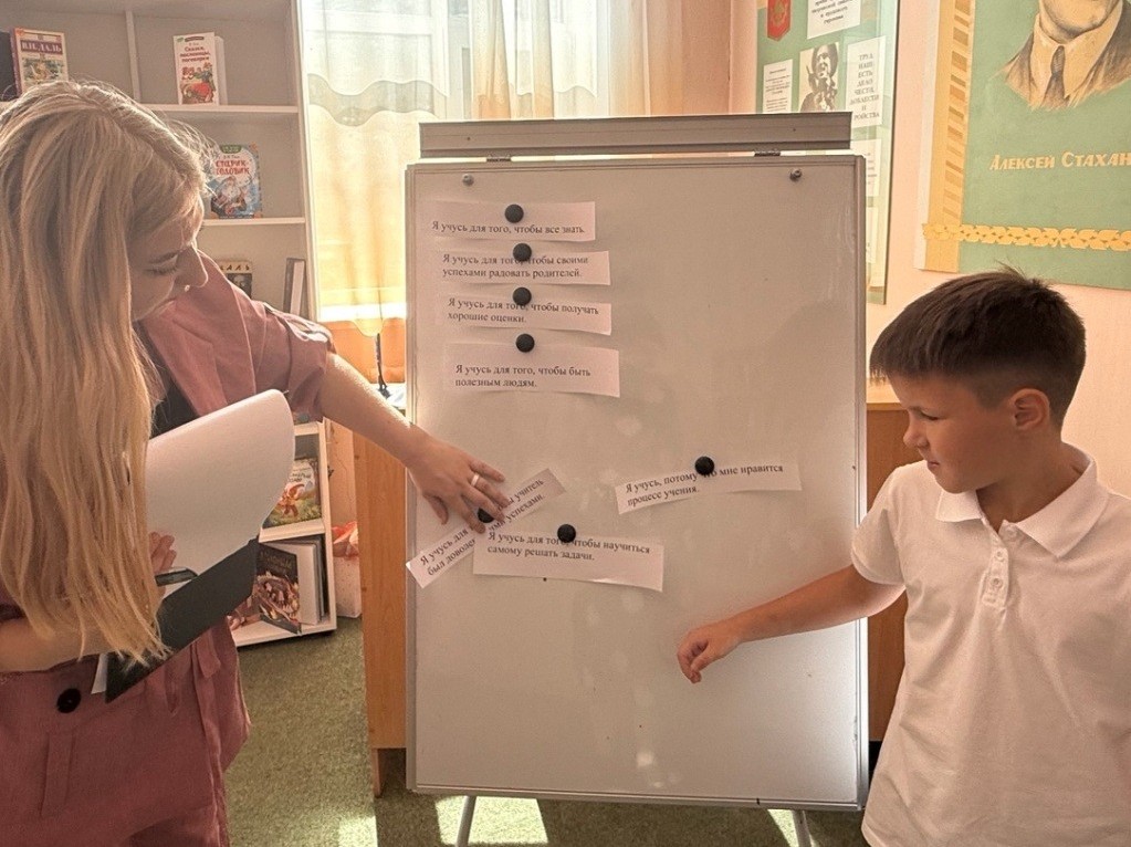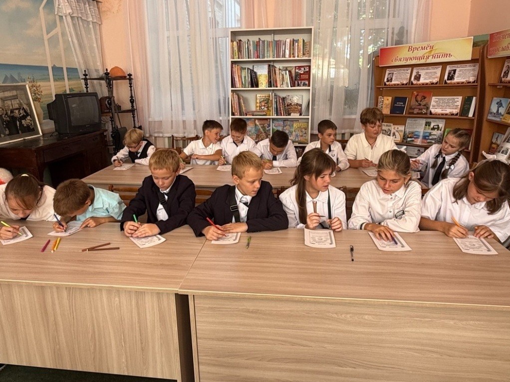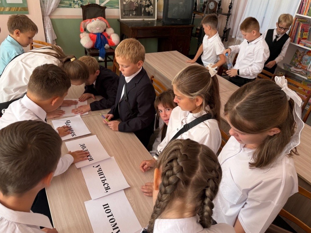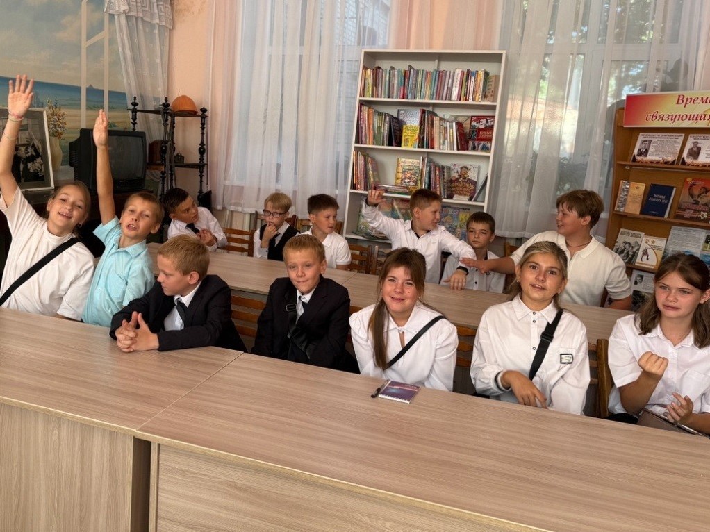 1 сентября, в День знаний, в Городской библиотеке для детей г. Стаханова для учащихся 5 класса ССШ № 3 им. В.И. Колядина состоялся первый урок «Вновь школьный звонок нас зовёт на урок». Тема урока - «Зачем человеку учиться?», стала отправной точкой для размышлений о важности знаний, развития и стремления. Мероприятие началось с тёплого приветствия от библиотекаря, которая рассказала ребятам о том, как книга становится верным помощником в учёбе и жизни. Через интересные истории, викторины и интерактивные задания дети поняли, что учиться — это не только обязанность, но и возможность открывать мир, мечтать, творить и становиться умнее с каждым днём. Ребята познакомились с новыми книжными выставками, посвящёнными школьным предметам, детективам, приключениям и фантастике. Также школьники вспоминали пословицы и поговорки об учёбе, играли в игру «Незаконченные предложения». Первый урок завершился заполнением рабочего листа «День знаний» и составлением цитатой известного человека В.А. Сухомлинского «Человек должен учиться, потому что он человек. На мероприятии присутствовало: 19 ч. | |