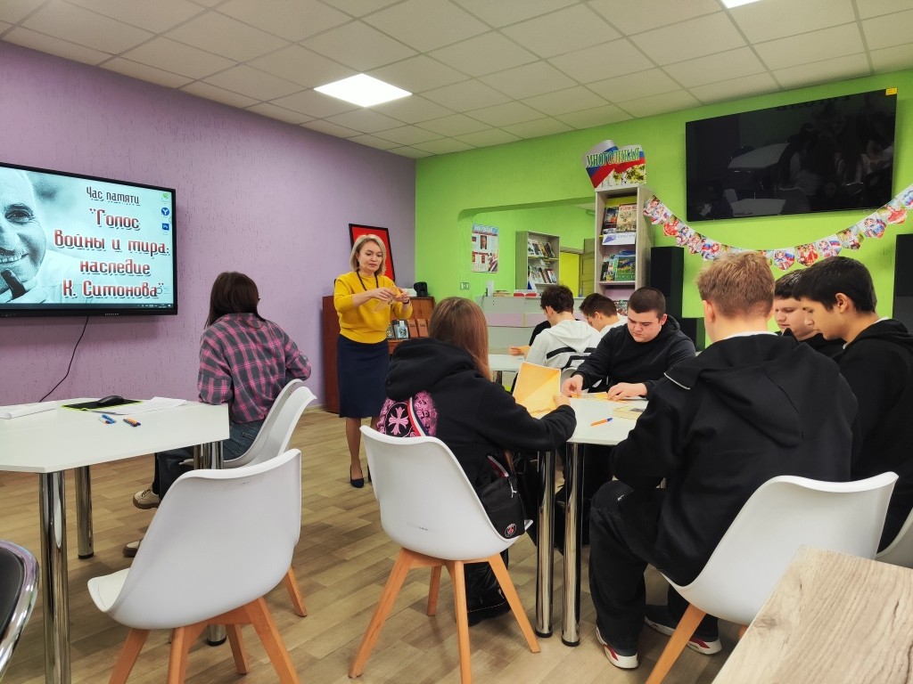 28 ноября на базе ЦГ библиотеки г. Стаханова для учащихся Всероссийской общественной организации «Движение первых», прошел час памяти «Голос войны и мира: наследие Константина Симонова», посвященный 110-летию со дня рождения писателя.