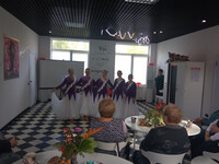 3 октября в клубе «Золотой возраст» прошел литературно-музыкальный квартирник «Душевное чаепитие» приуроченное к Международному дню пожилого человека. Мероприятие началась с теплых поздравлений и пожеланий доброго здоровья и долголетия всем участникам клуба, которые собрались в «библиогостинной ». Для гостей была подготовлена интересная литературно – музыкальная программа, в которой звучали музыкальные произведения А. Градского «Как молоды мы были», Е. Ваенги «Желаю…», Галины Быковой «Хотелось бы купить молодость», «Песня про бабушку» и стихи. Песни, когда-то вызывавшие мечты и романтику, наполнили сердца светом и положительными эмоциями. Каждая композиция вызывала воспоминания и ностальгию, услышав знакомые нотки все дружно подпевали. Увлекательные викторины и конкурсы стали неотъемлемой частью квартирника. Участницы с энтузиазмом вспоминали крылатые фразы из любимых фильмов и сказок. Изюминкой мероприятия стали выступления ребят - коллектива «Элегия» Детской музыкальной школы №5, с которой нас связывает давняя дружба и нашего читателя Волкова Кирилла, который подарил веселое стихотворение «Про бабушку». Наши бабушки поделились своими главными рецептами, которые помогли им сохранить свою молодость, оптимизм, задор и бодрость. Мероприятие закончилось беседой у выставки и знакомством с литературой, которая поможет всем участникам клуба интересно и с пользой проводить свой досуг. В заключение все дружно собрали букеты из осенних листьев, украсив столы, а ведущие поблагодарили всех за то, что они остаются верными друзьями библиотеки, посещая мероприятия и участвуя в конкурсах и акциях, закончив мероприятие душевным чаепитием. | |
